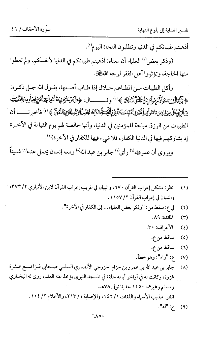 (وذكر بعض العلماء أن معناه: أذهبتم طيباتكم في الدنيا لأنفسكم، ولم تعطوا منها الحاجة، وتؤثروا أهل الفقر لوجه الله D.