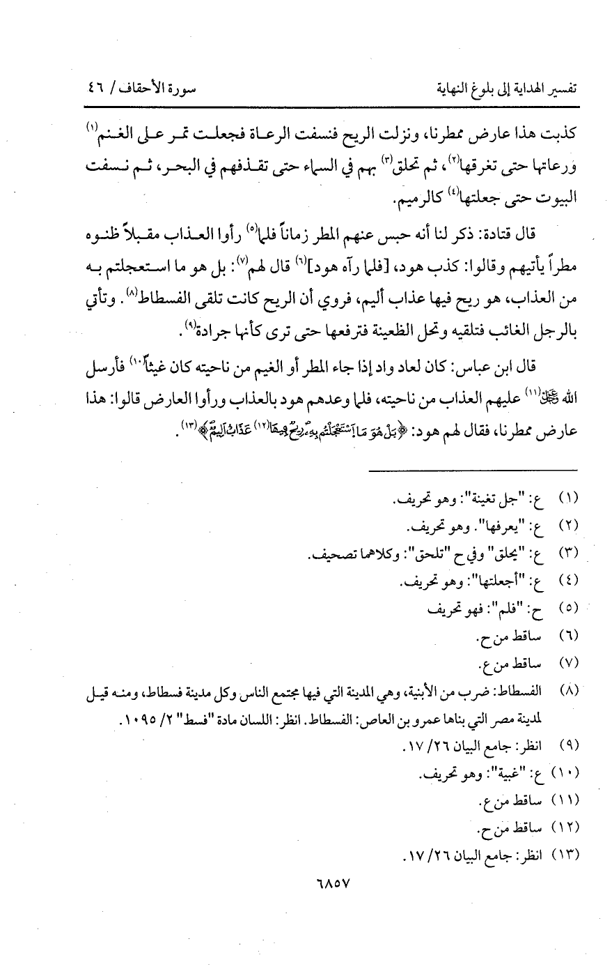 قال ابن عباس: كان لعاد واد إذا جاء المطر أو الغيم من ناحيته كان غيثاً فأرسل الله D عليهم العذاب من ناحيته، فلما وعدهم هود بالعذاب ورأوا العارض قالوا: هذا عارض ممطرنا، فقال لهم هود: {بَلْ هُوَ مَا استعجلتم بِهِ رِيحٌ فِيهَا عَذَابٌ أَلِيمٌ}.