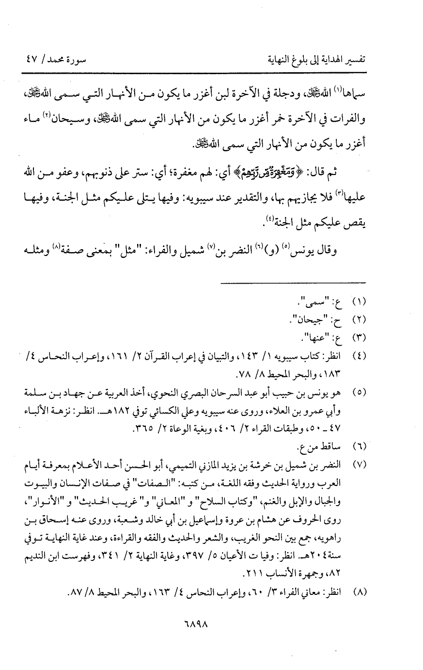 سماها الله D، ودجلة في الآخرة لبن أغزر ما يكون من الأنهار التي سمى الله D، والفرات في الآخرة خمر أغزر ما يكون من الأنهار التي سمى الله D، وسيحان ماء أغزر ما يكون من الأنهار التي سمى الله D.