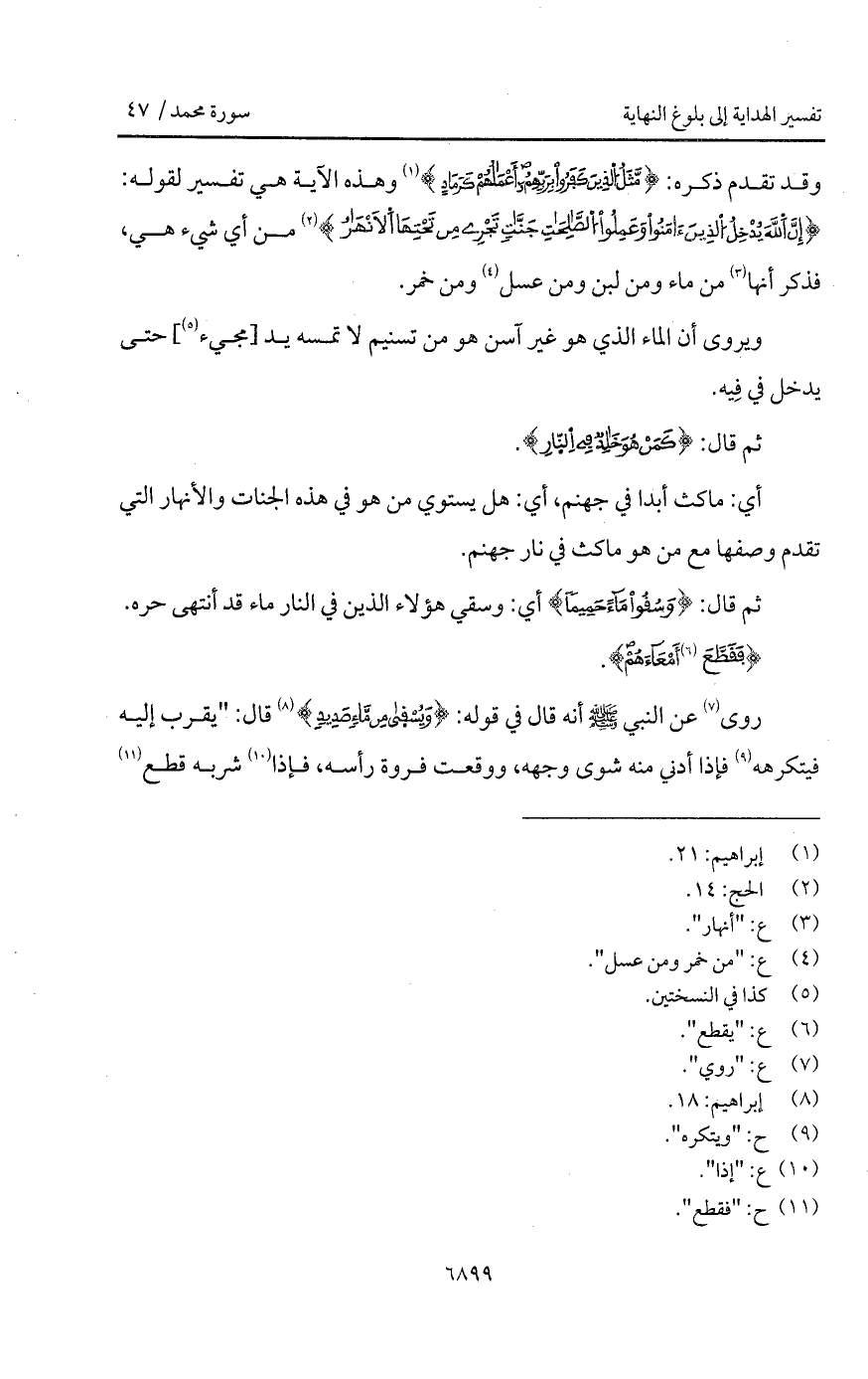 روى عن النبي صلى الله أنه قال في قوله: " {ويسقى مِن مَّآءٍ صَدِيدٍ} قال: " يقرب إليه فيتكرهه فإذا أدني منه شوى وجهه، ووقعت فروة رأسه، فاذا فإذا شربه قطع