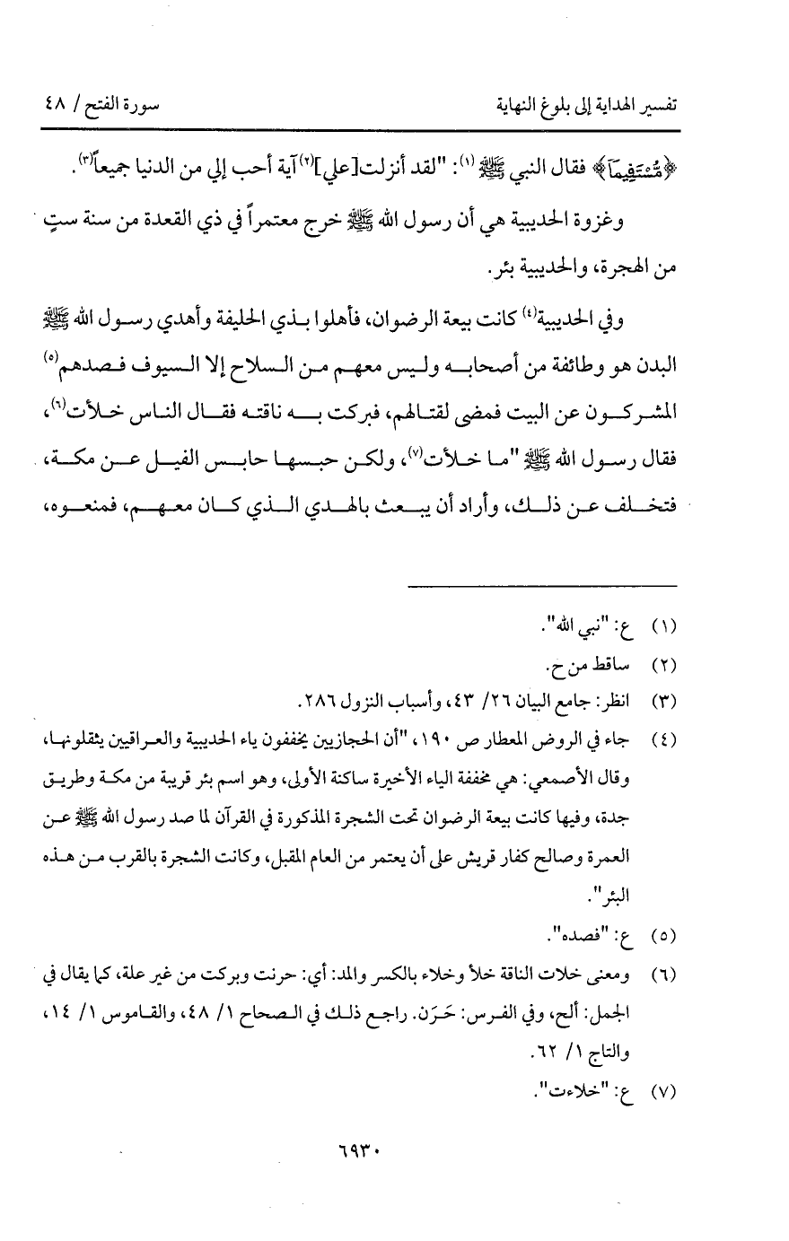 وفي الحديبية كانت بيعة الرضوان، فأهلوا بذي الحليفة وأهدي رسول الله A البدن هو وظائفة من أصحابه وليس معهم من السلاح إلا السيوف فصدهم المشركون عن البيت فمضى لقتالهم، فبركت به ناقته فقال الناس خلأت، فقال رسول الله A " ما خلأت، ولكن حبسها حابس الفيل عن مكة، فتخلف عن ذلك، وأراد أن يبعث بالهدي الذي كان معهم، فمنعوه،