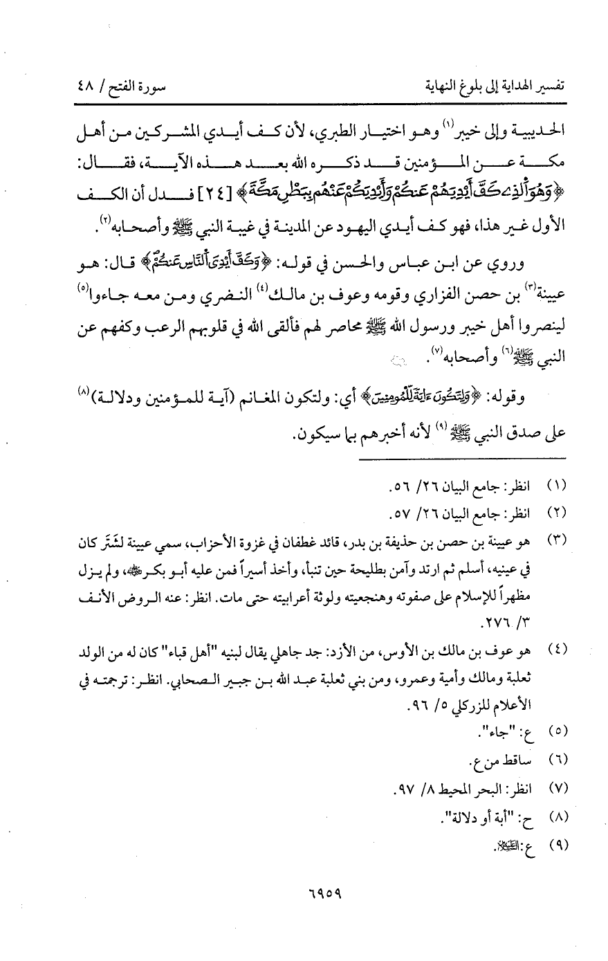 الحديبية وإلى خيبر وهو اختيار الطبري، لأن كف أيدي المشركين من أهل مكة عن المؤمنين قد ذكره الله بعد هذه الآية، فقال: {وَهُوَ الذي كَفَّ أَيْدِيَهُمْ عَنكُمْ وَأَيْدِيَكُمْ عَنْهُم بِبَطْنِ مَكَّةَ} [الفتح: 24] فدل أن الكف الأول غير هذا، فهو كف أيدي اليهود عن المدينة في غيبة النبي A وأصحابه.