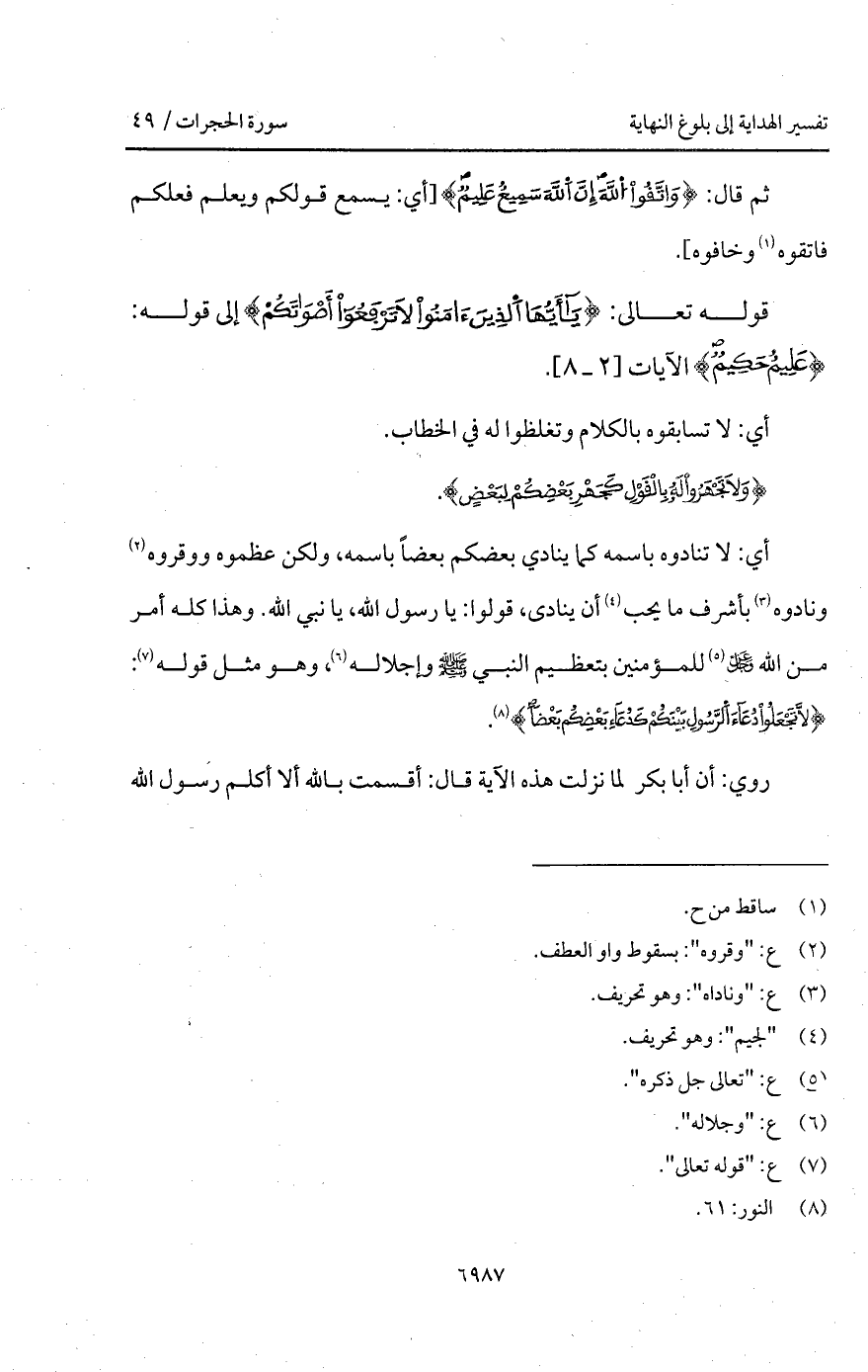 قوله تعالى: {يا أيها الذين آمَنُواْ لاَ ترفعوا أَصْوَاتَكُمْ}.