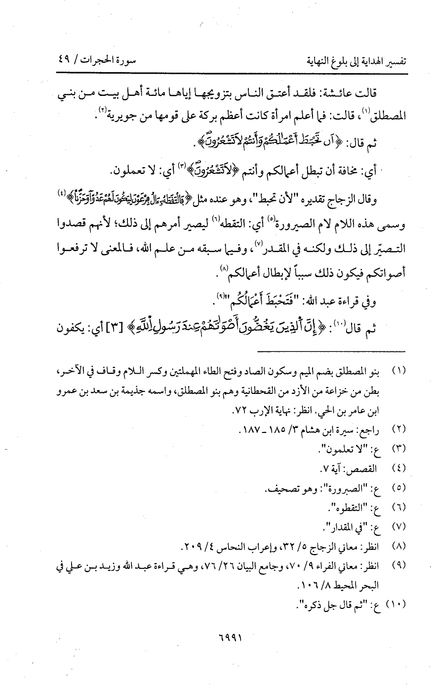 وقال الزجاج تقديره " لأن تحبط "، وهو عنده مثل {فالتقطه آلُ فِرْعَوْنَ لِيَكُونَ لَهُمْ عَدُوّاً وَحَزَناً} [القصص: 7] وسمى هذه اللام لام الصيرورة أي: التقطه ليصير أمرهم إلى ذلك؛ لأنهم قصدوا التصيّر إلى ذلك ولكنه في المقدر، وفيما سبقه من علم الله، فالمعنى لا ترفعوا أصواتكم فيكون ذلك سبباً لإبطال أعمالكم.