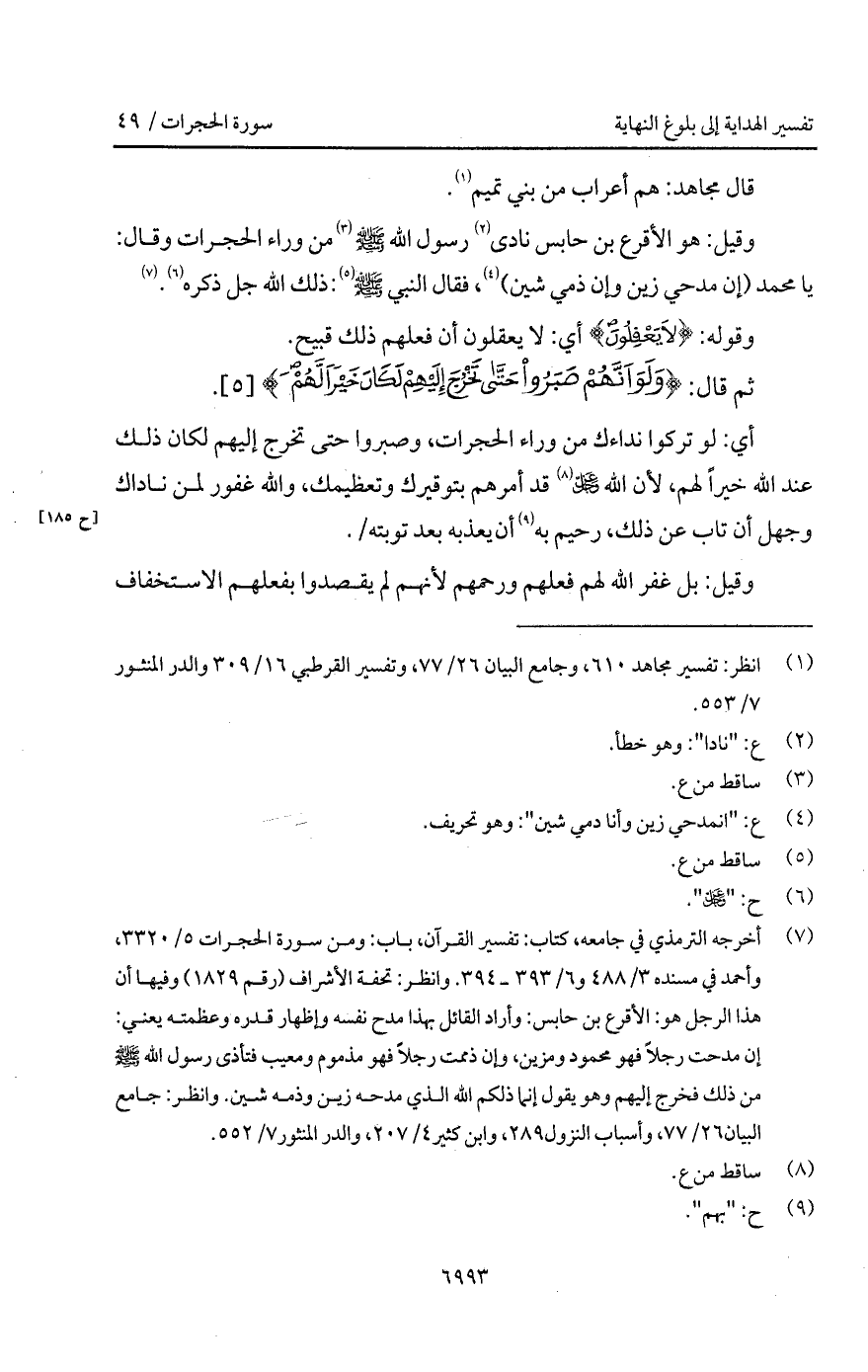 وقيل: " هو الأقرع بن حابس نادى رسول الله A من وراء الحجرات وقال: يا محمد (إن مدحي زين وإن ذمي شين)، فقال النبي A: ذلك الله جل ذكره ".
