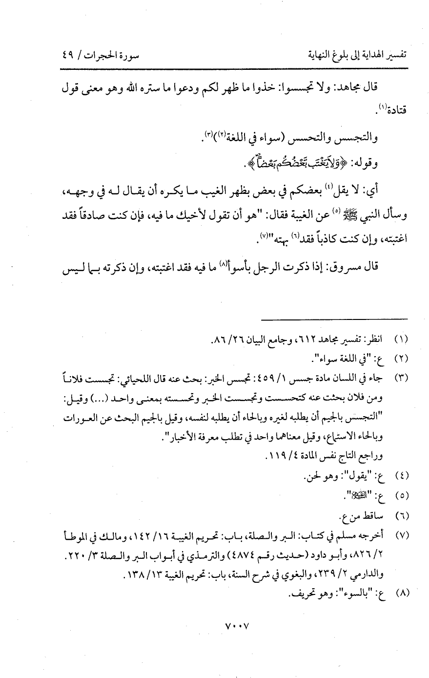 أي: لا يقل بعضكم في بعض بظهر الغيب ما يكره أن يقال له في وجهه، وسأل النبي A عن الغيبة فقال: " هو أن تقول لأخيك ما فيه، فإن كنت صادقاً فقد اغتبته، وإن كنت كاذباً فقد بهته ".