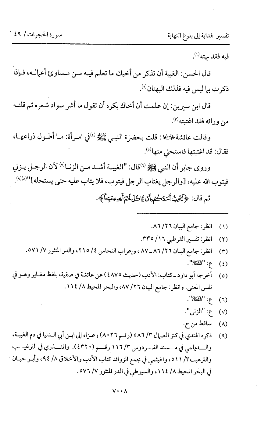 قال ابن سيرين: إن علمت أن أخاك يكره أن تقول ما أشر سواد شعره ثم قلته من ورائه فقد اغتبته.