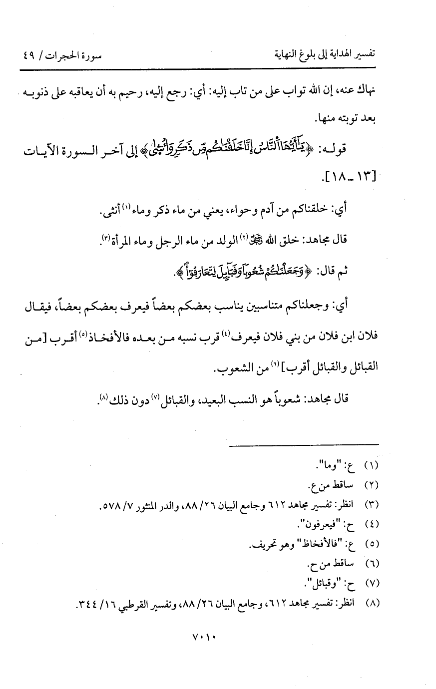 ثم قال: {وَجَعَلْنَاكُمْ شُعُوباً وَقَبَآئِلَ لتعارفوا}.