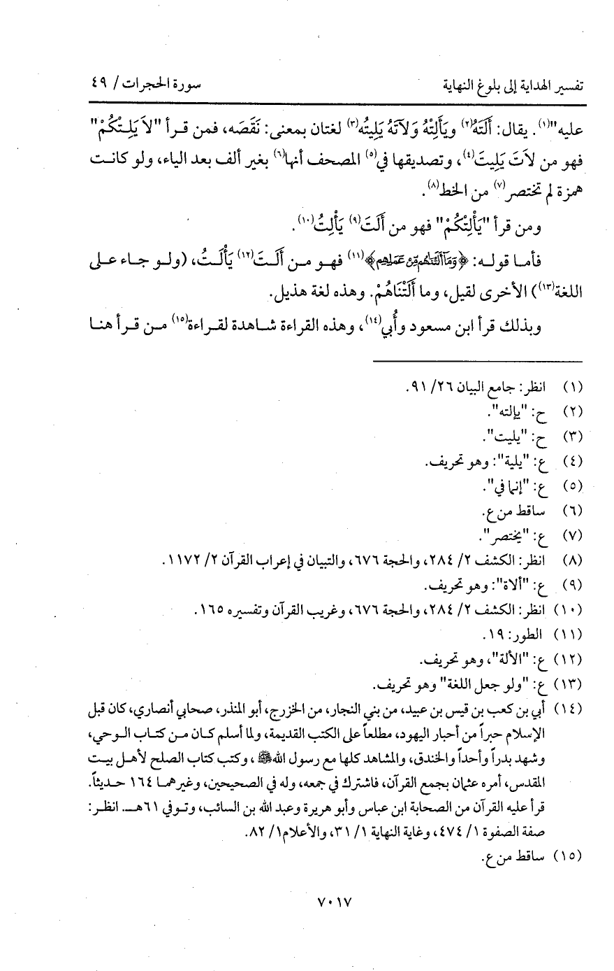 يقال: أَلَتَهُ ويَأَلِتْهُ وَلآتَهُ يَلِيتُه لغتان بمعنى: نَقَصَه، فمن قرأ " لاَ يَلِتْكُمْ " فهو من لاَتَ يَلِيتَ، وتصديقها في المصحف أنها بغير ألف بعد الياء، ولو كانت همزة لم تختصر من الخط.