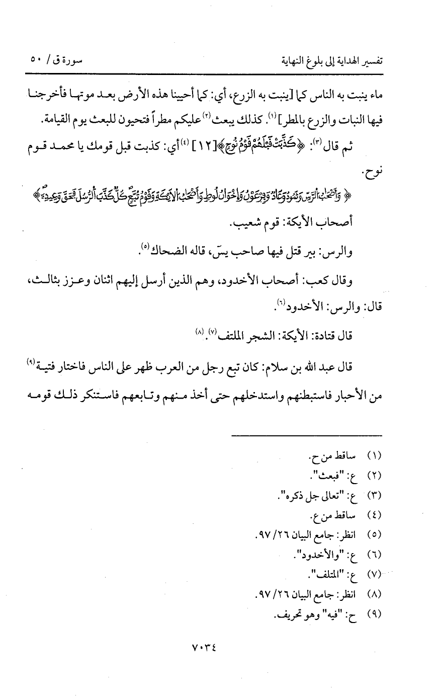 {وَأَصْحَابُ الرس وَثَمُودُ * وَعَادٌ وَفِرْعَوْنُ وَإِخْوَانُ لُوطٍ * وَأَصْحَابُ الأيكة وَقَوْمُ تُّبَّعٍ كُلٌّ كَذَّبَ الرسل فَحَقَّ وَعِيدِ}