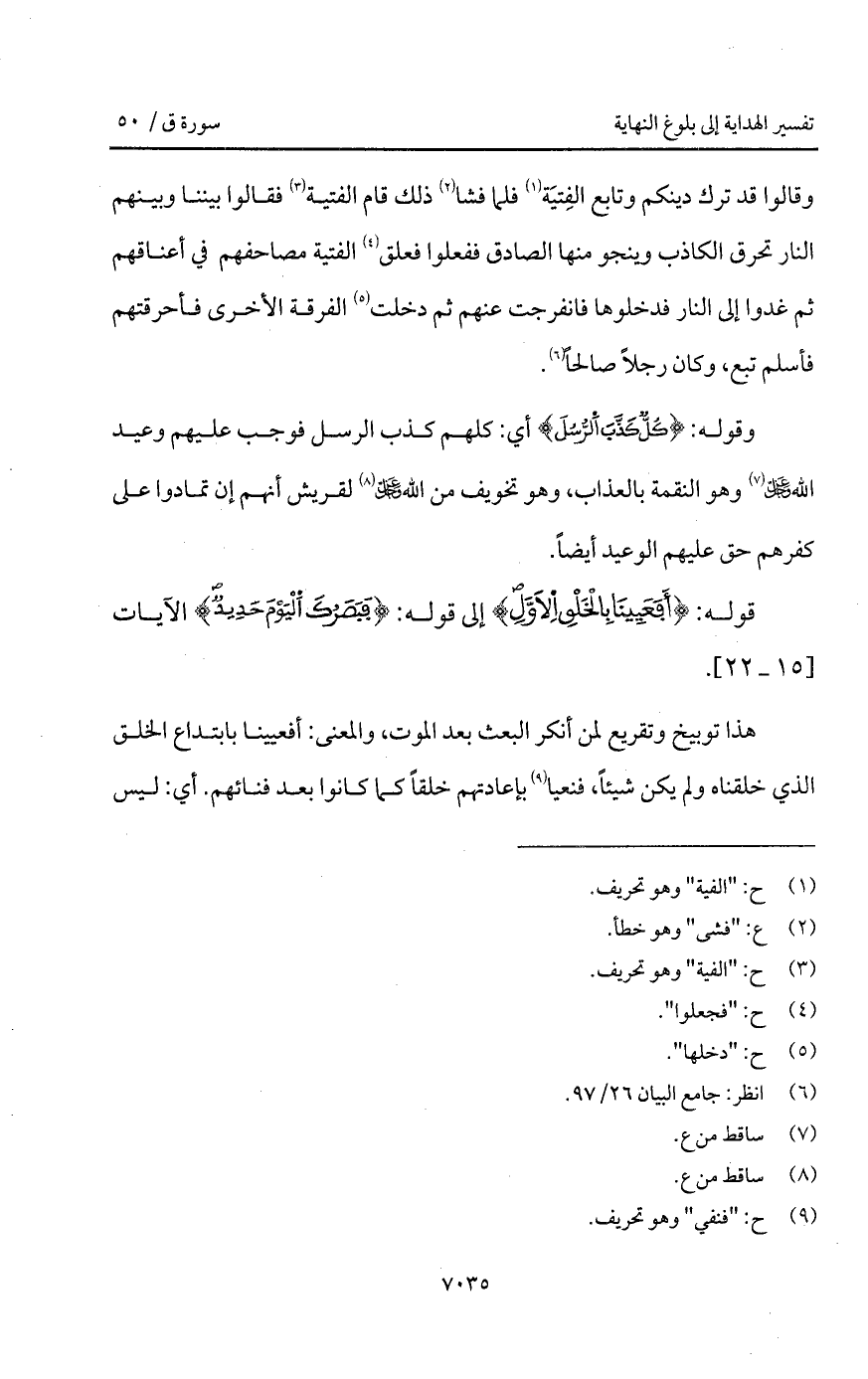 وقالوا قد ترك دينكم وتابع الفِتَيَة فلما فشا ذلك قام الفتية فقالوا بيننا وبينهم النار تحرق الكاذب وينجو منها الصادق ففعلوا فعلق الفتية مصاحفهم في أعناقهم ثم غدوا إلى النار فدخلوها فانفرجت عنهم ثم دخلت الفرقة الأخرى فأحرقتهم فأسلم تبع، وكان رجلاً صالحاً.