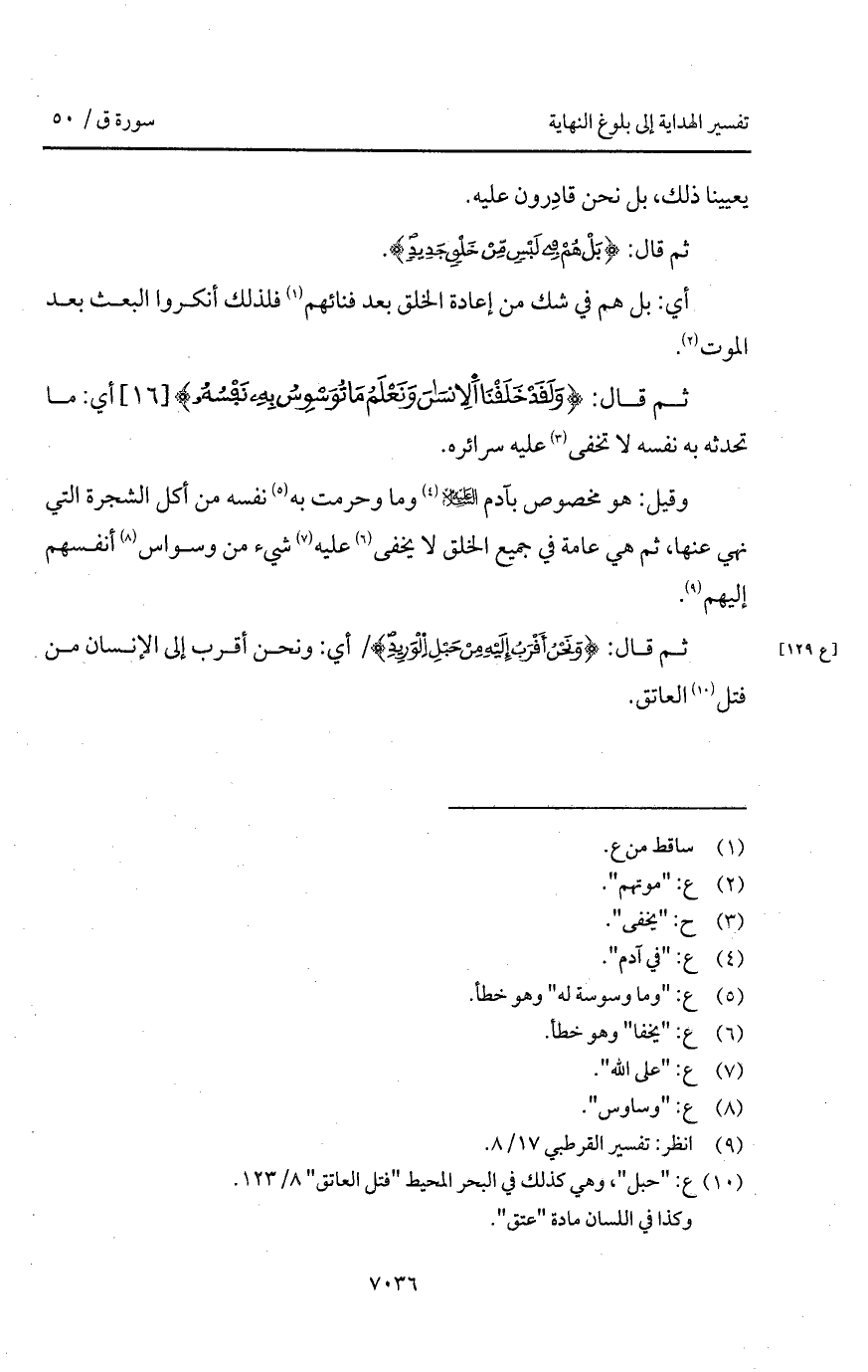 ثم قال: {وَنَحْنُ أَقْرَبُ إِلَيْهِ مِنْ حَبْلِ الوريد} / أي: ونحن أقرب إلى الإنسان من قتل العاتق.