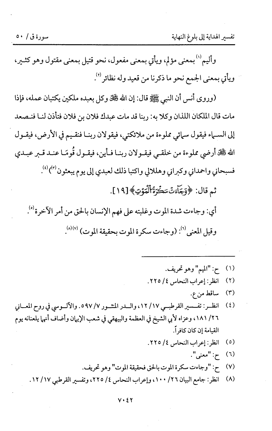 وأليم بمعنى مؤلم، ويأتي بمعنى مفعول، نحو قتيل بمعنى مقتول وهو كثير، ويأتي بمعنى الجمع نحو ما ذكرنا من قعيد وله نظائر.