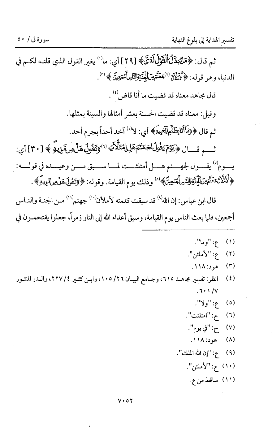 قال: {مَا يُبَدَّلُ القول لَدَيَّ} أي: ما يغير القول الذي قلته لكم في الدنيا، وهو قوله: {لأَمْلأَنَّ جَهَنَّمَ مِنَ الجنة والناس أَجْمَعِينَ} [هود: 118].