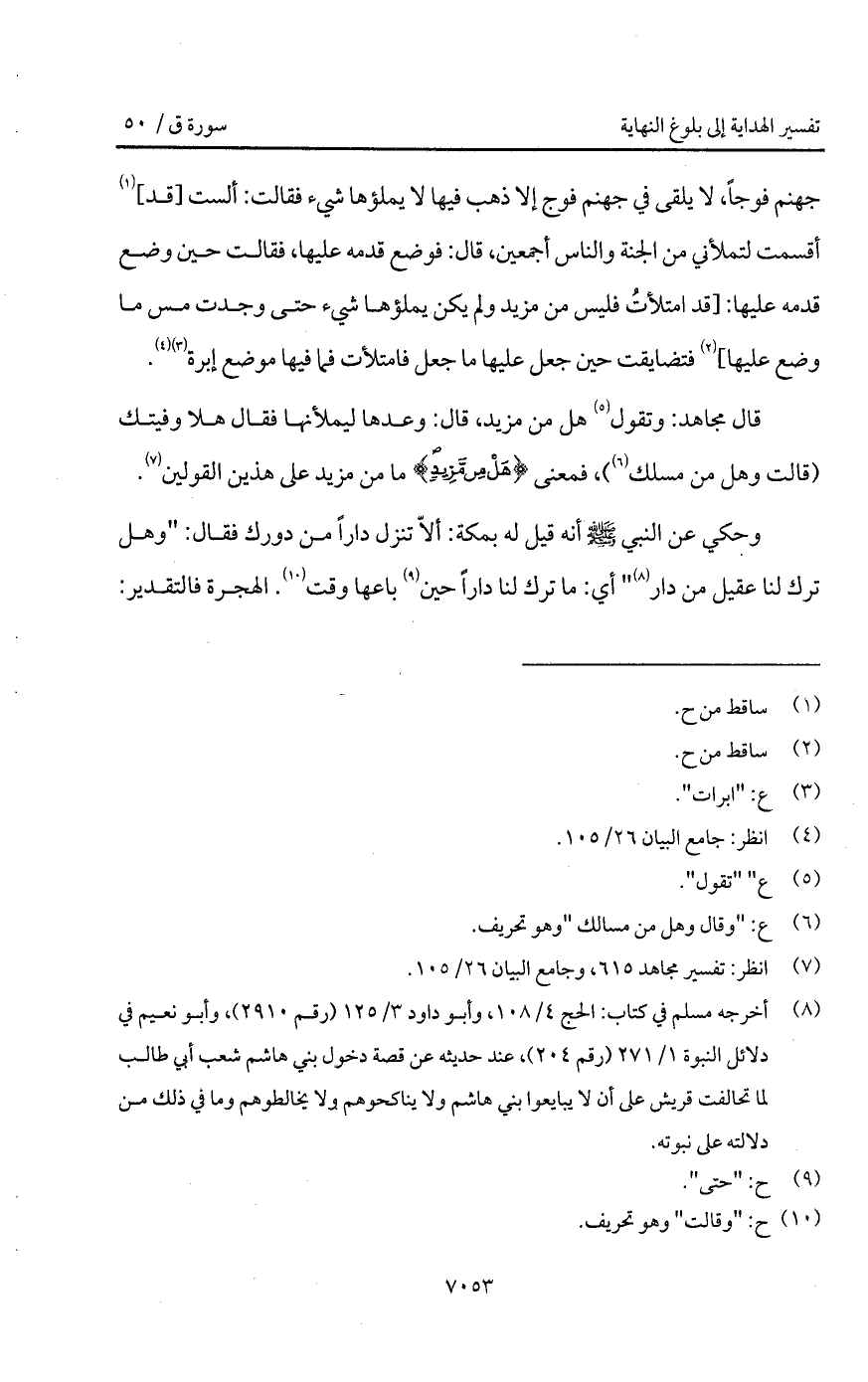 قال مجاهد: وتقول هل من مزيد، قال: وعدها ليملأنها فقال هلا وفيتك (قالت وهل من مسلك)، فمعنى {هَلْ مِن مَّزِيدٍ} ما من مزيد على هذين القولين.