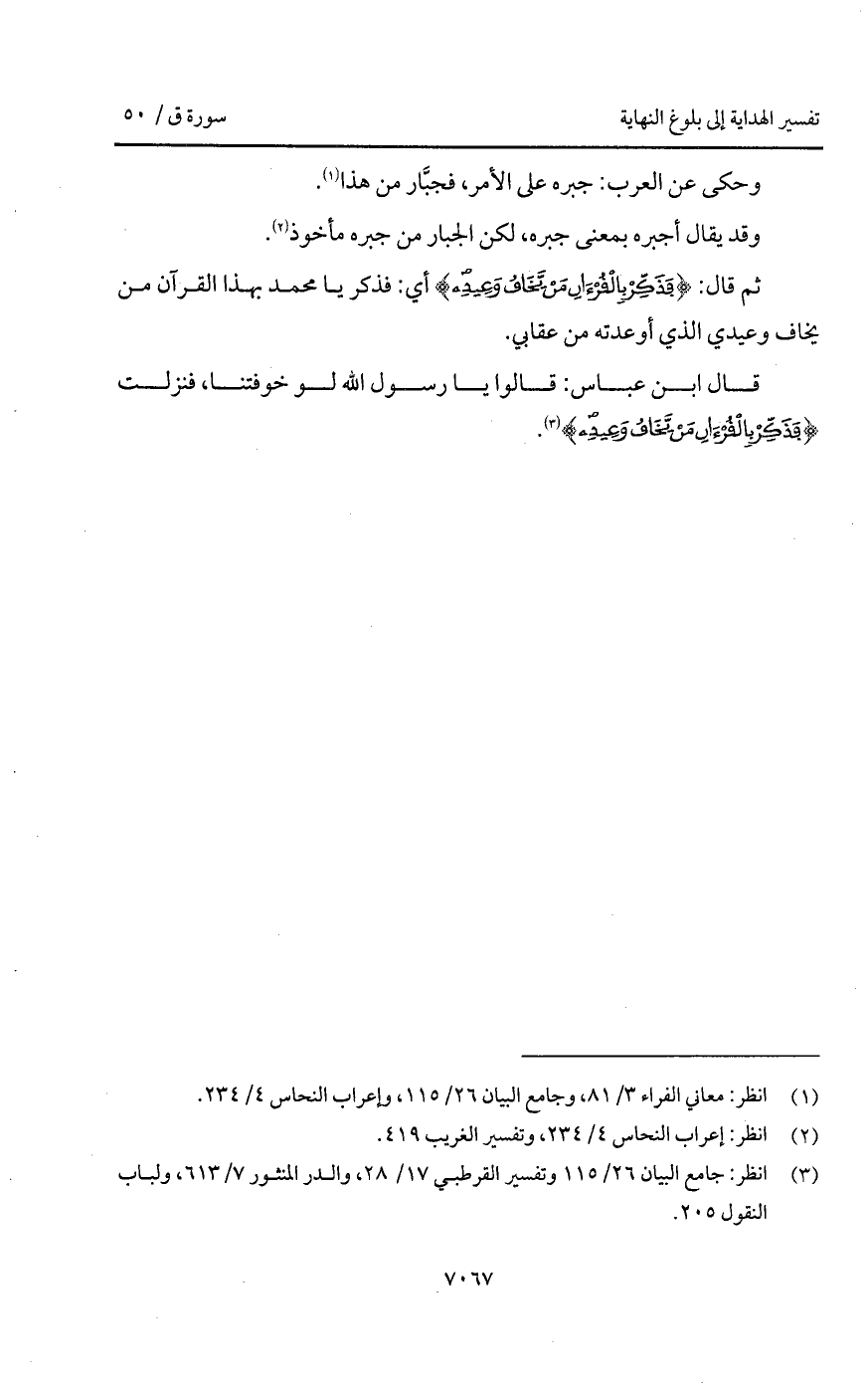 قال ابن عباس: قالوا يا رسول الله لو خوفتنا، فنزلت {فَذَكِّرْ بالقرآن مَن يَخَافُ وَعِيدِ}.