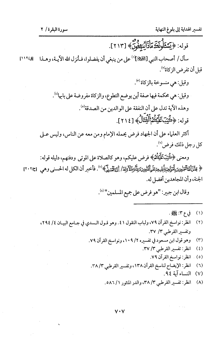 ومعنى {كُتِبَ عَلَيْكُمُ} فرض عليكم، وهو كالصلاة على الموتى ودفنهم، دليله قوله: {فَضَّلَ الله المجاهدين بأموالهم وَأَنْفُسِهِمْ عَلَى القاعدين دَرَجَةً وَكُلاًّ وَعَدَ الله الحسنى} [النساء: 95]. فأخبر أن الكل له الحسنى وهي الجنة، وأن المجاهدين أفضل له.