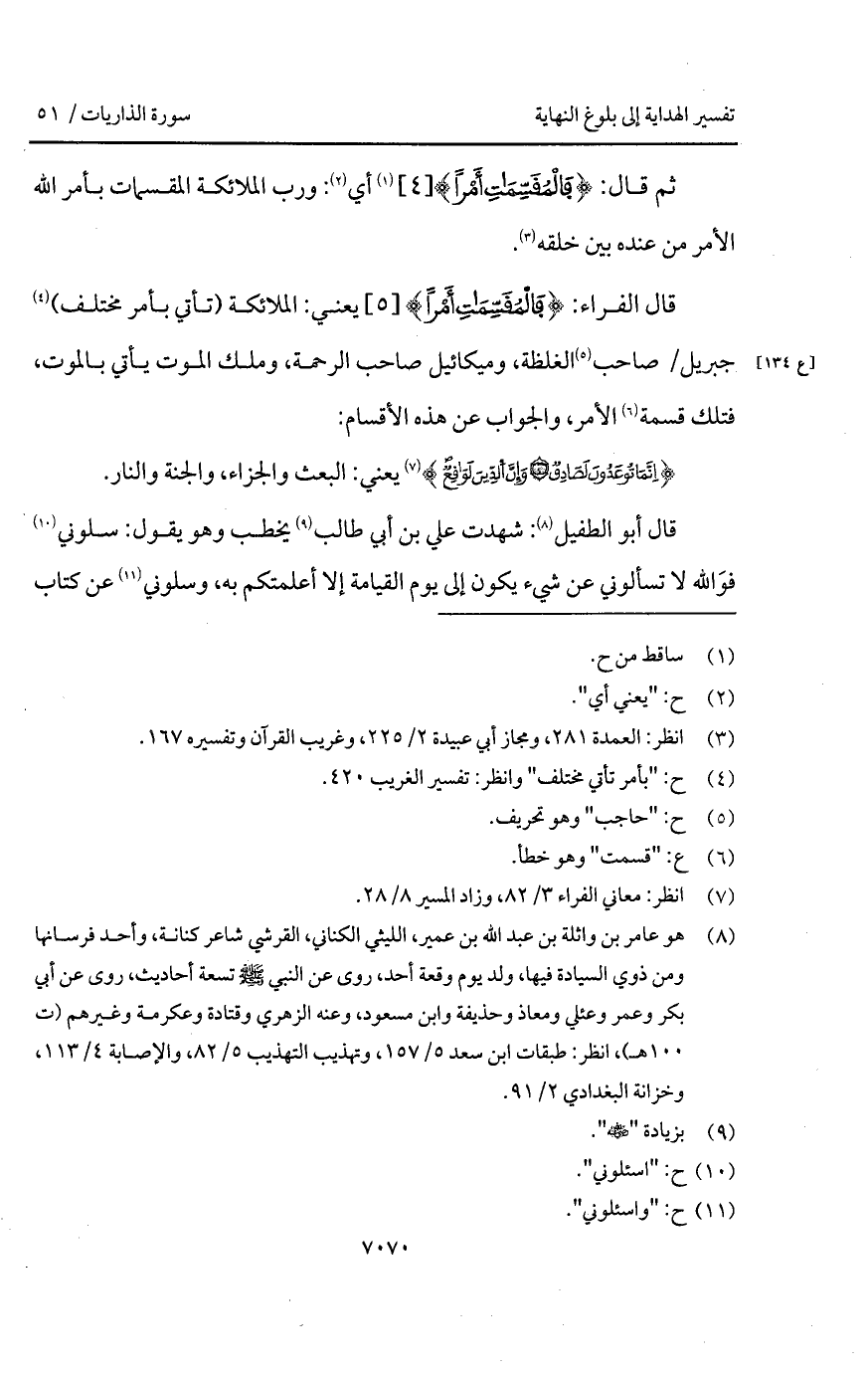 قال الفراء: {فالمقسمات أَمْراً} يعني: الملائكة (تأتي بأمر مختلف) جبريل / صاحب الغلظة، وميكائيل صاحب الرحمة، وملك الموت يأتي بالموت، فتلك قسمة الأمر، والجواب عن هذه الأقسام: