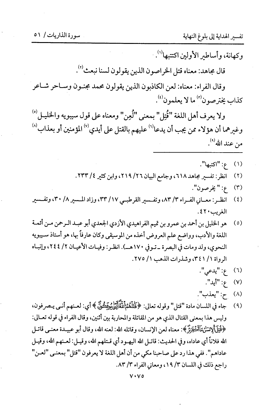 وقال الفراء: معناه: لعن الكاذبون الذين يقولون محمد مجنون وساحر شاعر كذاب يخترصون ما لا يعلمون.