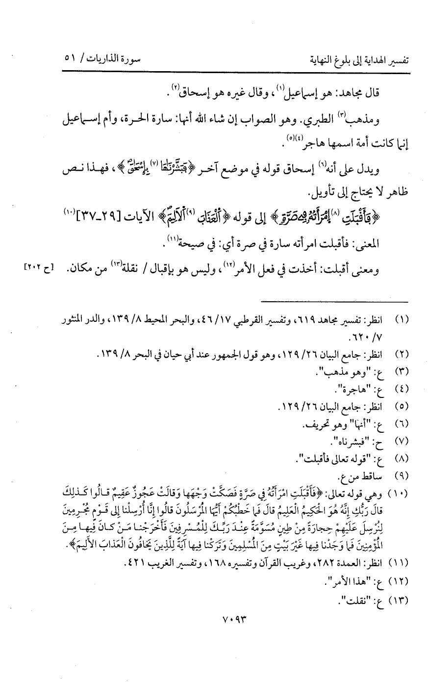 ومذهب الطبري. وهو الصواب إن شاء الله أنها: سارة الحرة، وأم إسماعيل إنما كانت أمة اسمها هاجر.