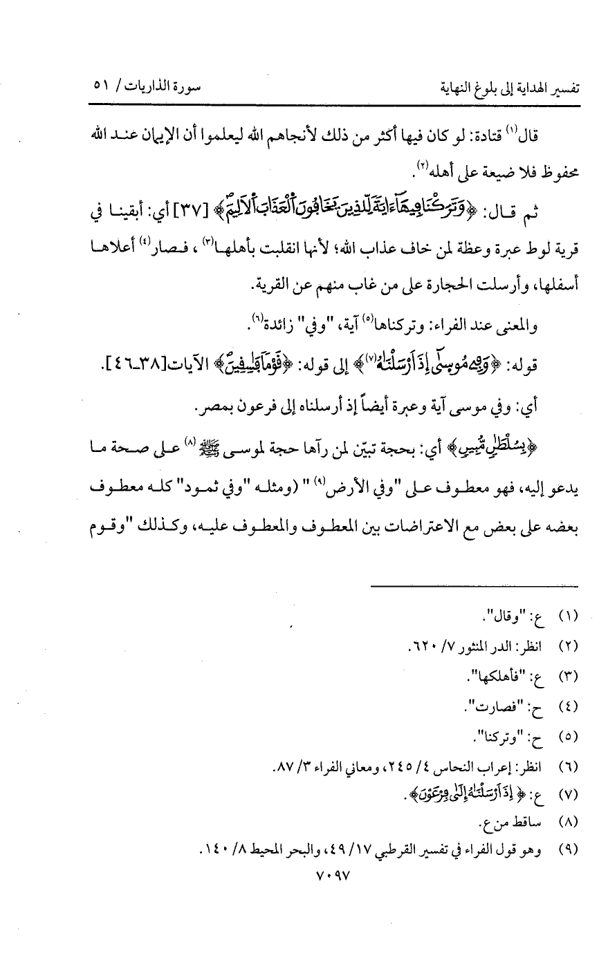 {بِسُلْطَانٍ مُّبِينٍ} أي: بحجة تبيّن لمن رآها حجة لموسى A على صحة ما يدعو إليه، فهو معطوف على " وفي الأرض " (ومثله " وفي ثمود " كله معطوف بعضه على بعض مع الاعتراضات بين المعطوف والمعطوف عليه، وكذلك " وقوم