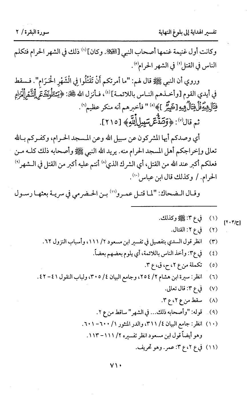 وكانت أول غنيمة غنمها أصحاب النبي [عليه السلام. وكان] ذلك في الشهر الحرام فتكلم الناس في القتل في الشهر الحرام.