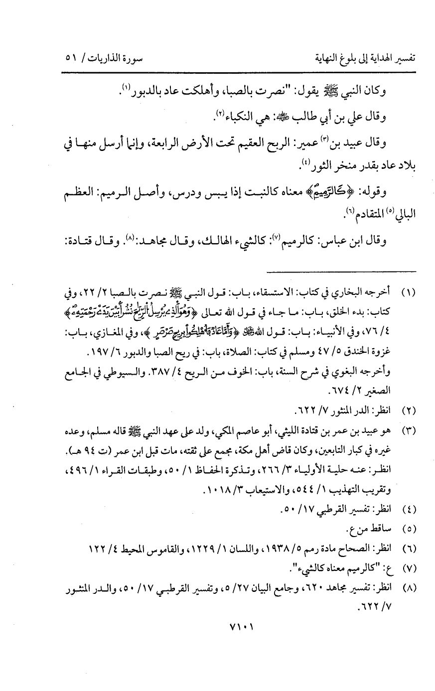 وقال عبيد بن عمير: الريح العقيم تحت الأرض الرابعة، وإنما أرسل منها في بلاد عاد بقدر منخر الثور.