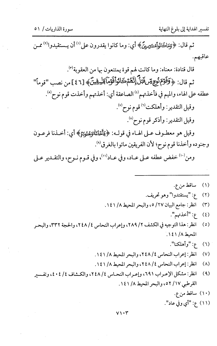 من نصب " قوماً " عطفه على الهاء، والميم في فأخذتهم الصاعقة أي: أخذتهم وأخذت قوم نوح.