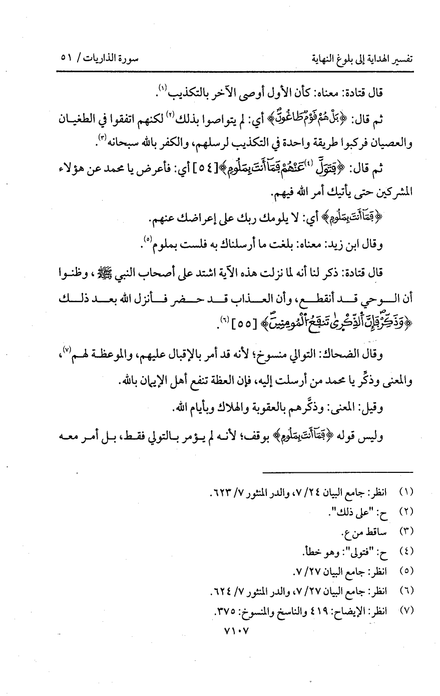 وليس قوله {فَمَآ أَنتَ بِمَلُومٍ} بوقف؛ لأنه لم يؤمر بالتولي فقط، بل أمر معه