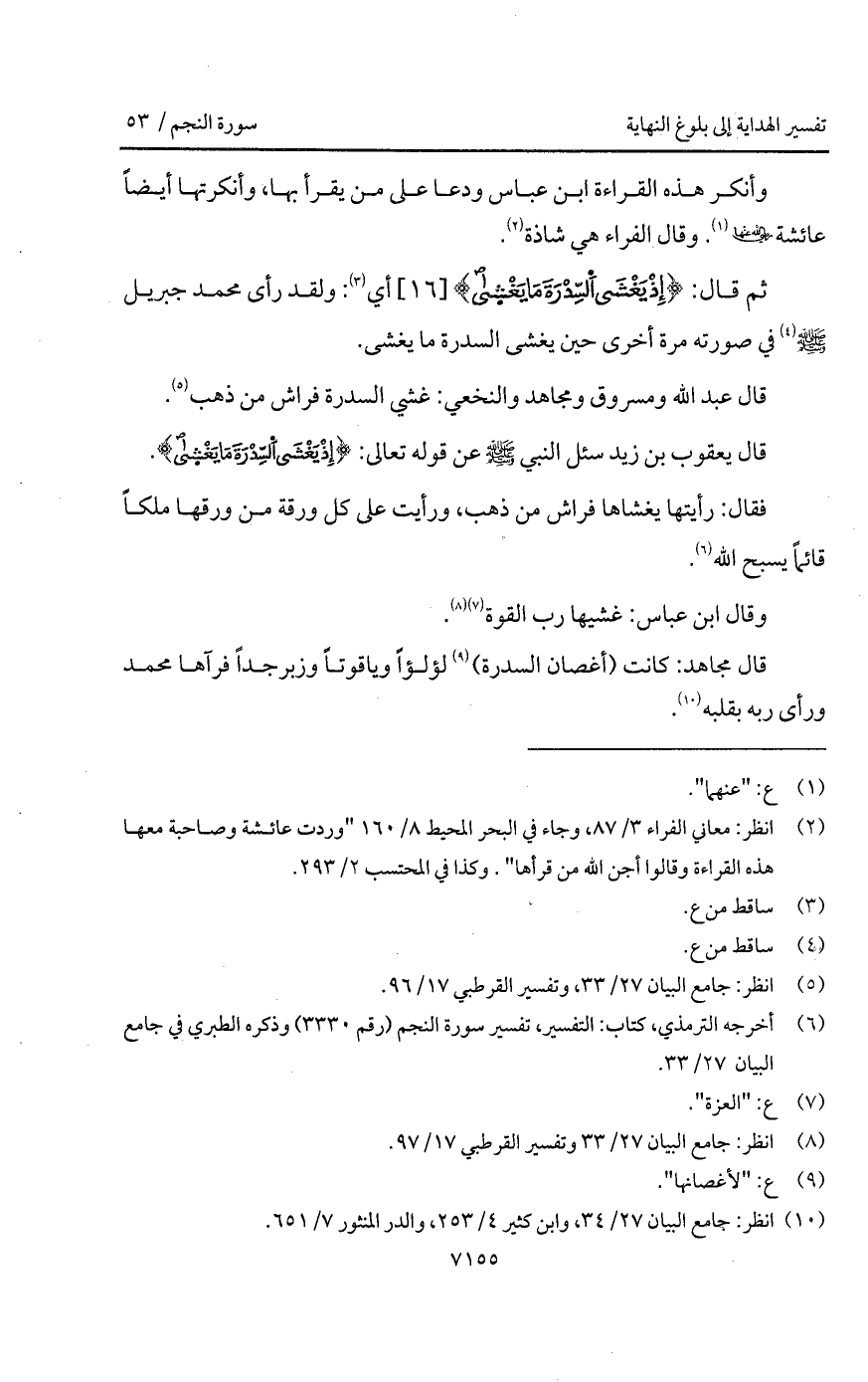 قال عبد الله ومسروق ومجاهد والنخعي: غشي السدرة فراش من ذهب.