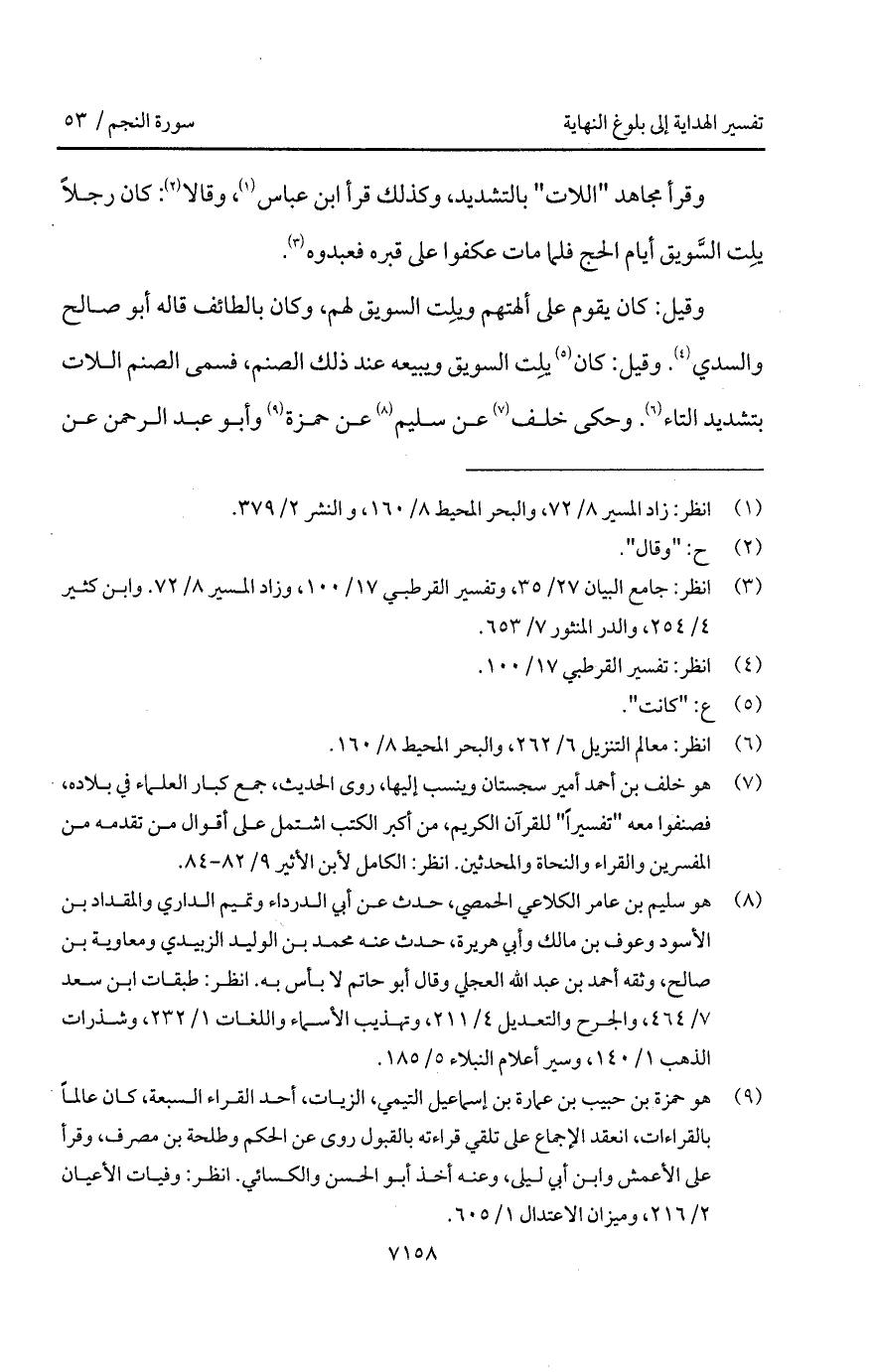 وقرأ مجاهد " اللات " بالتشديد، وكذلك قرأ ابن عباس، وقالا: كان رجلاً يلِت السَّويق أيام الحج فلما مات عكفوا على قبره فعبدوه.