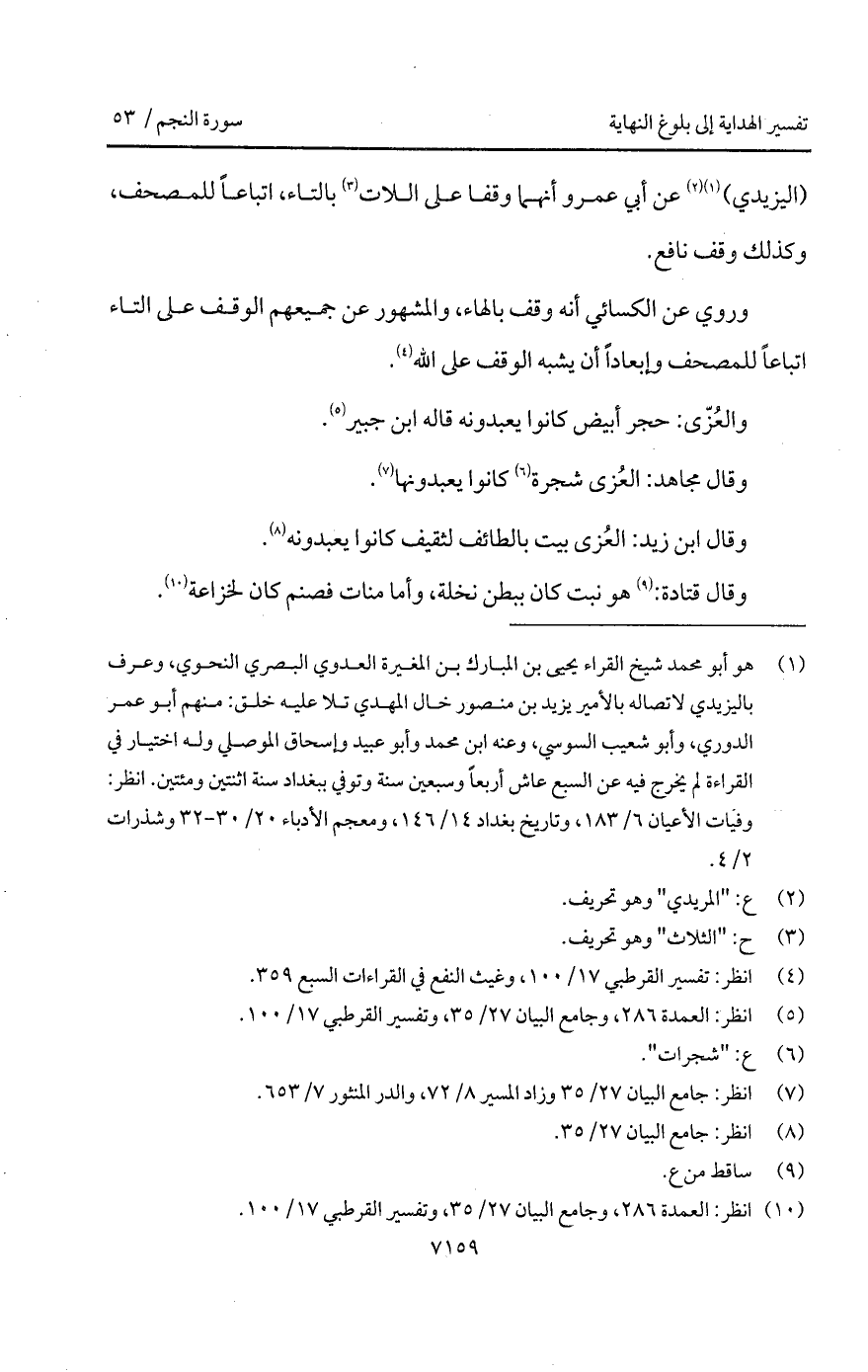 (اليزيدي) عن أبي عمرو أنهما وقفا على اللات بالتاء، اتباعاً للمصحف، وكذلك وقف نافع.