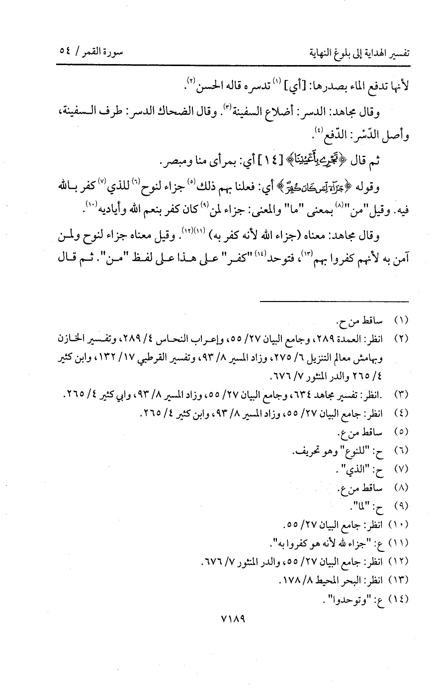 وقال مجاهد: معناه (جزاء الله لأنه كفر به). وقيل معناه جزاء لنوح ولمن آمن به لأنهم كفروا بهم، فتوحد " كفر " على هذا على لفظ " من ". ثم قال