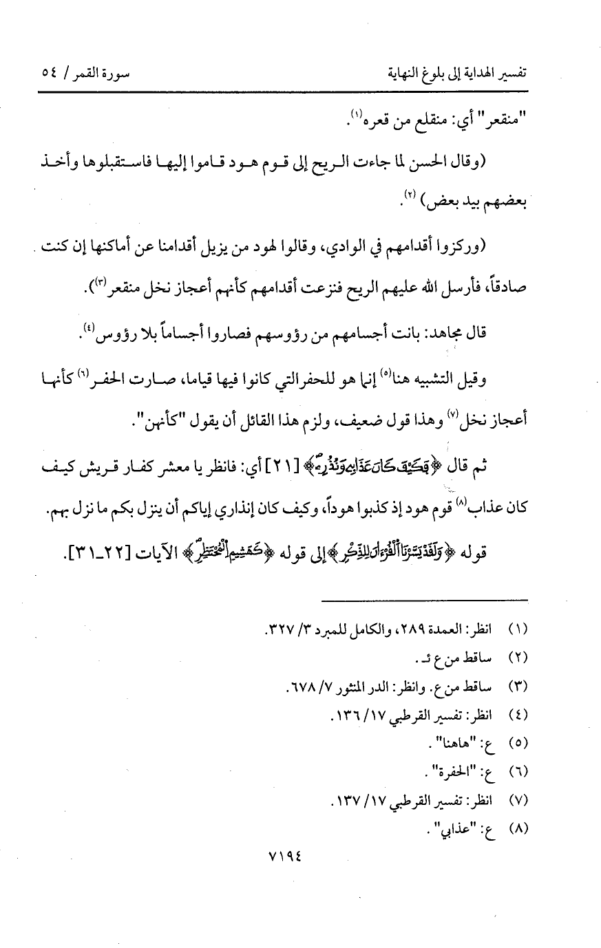 وقيل التشبيه هنا إنما هو للحفر التي كانوا فيها قياما، صارت الحفر كأنها أعجاز نخل وهذا قول ضعيف، ولزم هذا القائل أن يقول " كأنهن ".