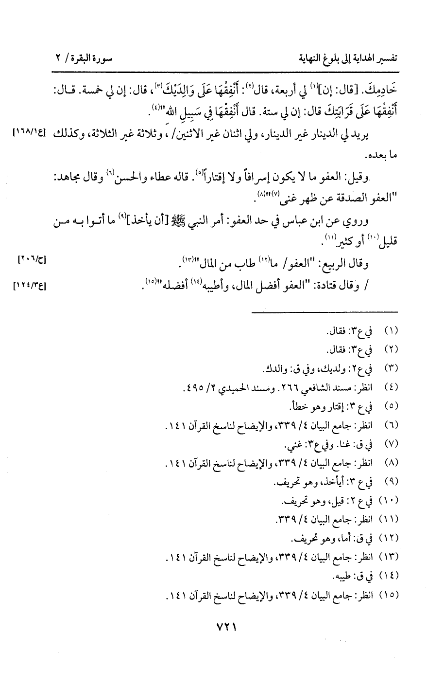 وقيل: العفو ما لا يكون إسرافاً ولا إقتاراً. قاله عطاء والحسن وقال مجاهد: " العفو الصدقة عن ظهر غنى ".