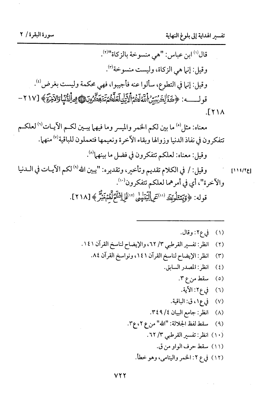 وقيل: / في الكلام تقديم وتأخير، وتقديره: " يبين الله لكم الآيات في الدنيا والآخرة "، أي في أمرهما لعلكم تتفكرون.