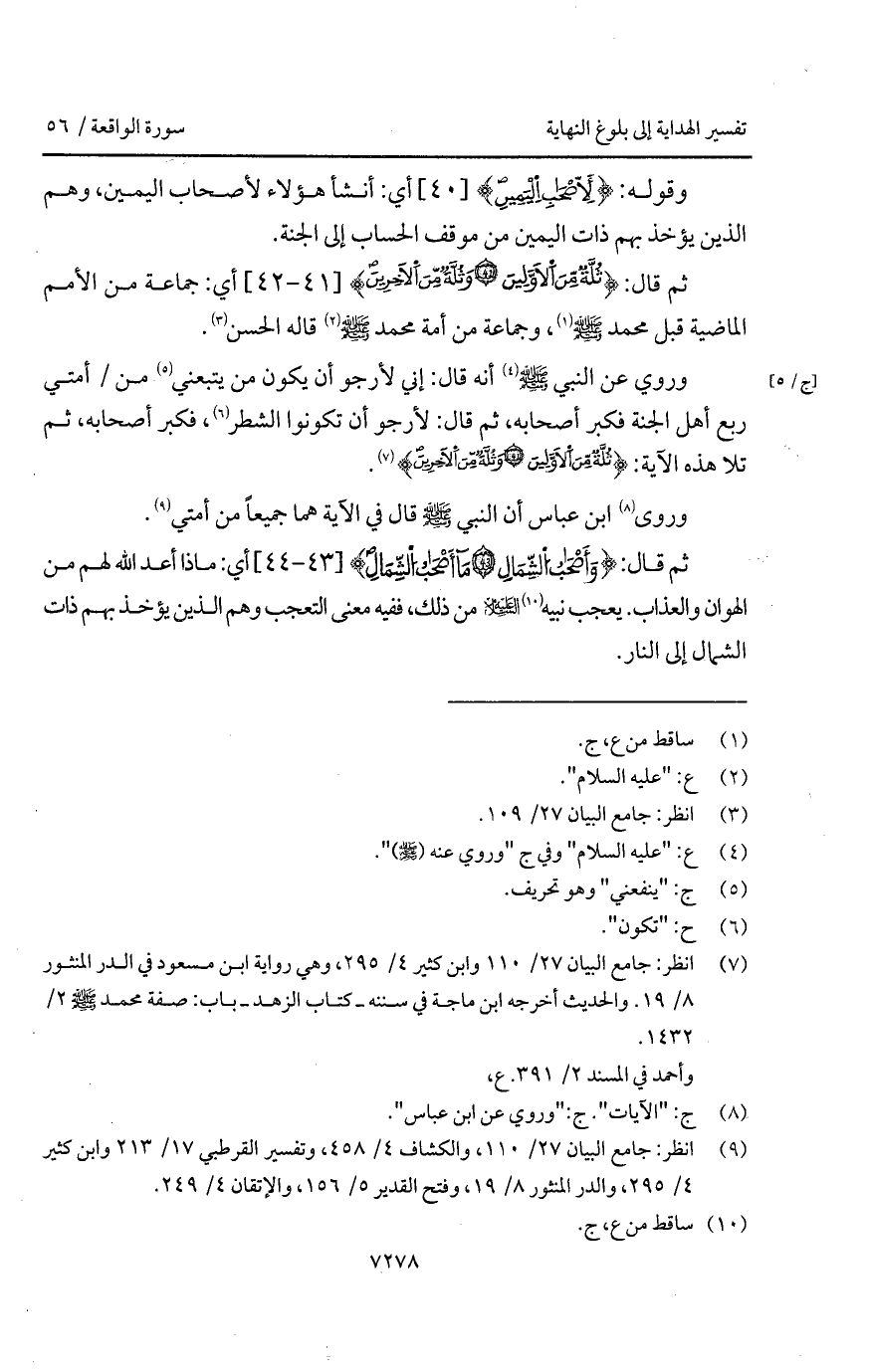 وروي عن النبي A أنه قال: " إني لأرجو أن يكون من يتبعني من / أمتي ربع أهل الجنة فكبر أصحابه، ثم قال: لأرجو أن تكونوا الشطر، فكبر أصحابه، ثم تلا هذه الآية: {ثُلَّةٌ مِّنَ الأولين * وَثُلَّةٌ مِّنَ الآخرين} ".