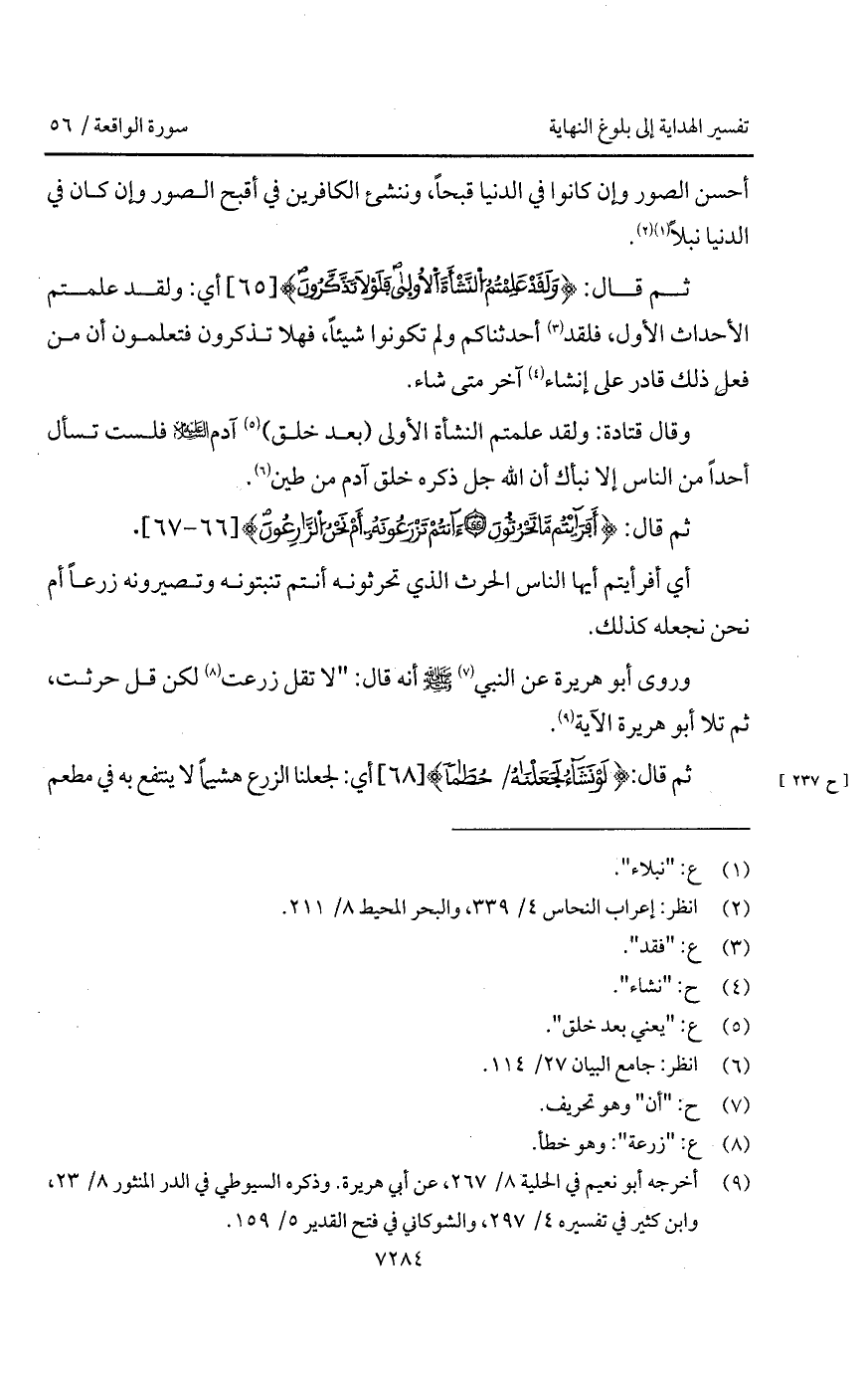 وروى أبو هريرة عن النبي A أنه قال: " لا تقل زرعت لكن قل حرثت "، ثم تلا أبو هريرة الآية.