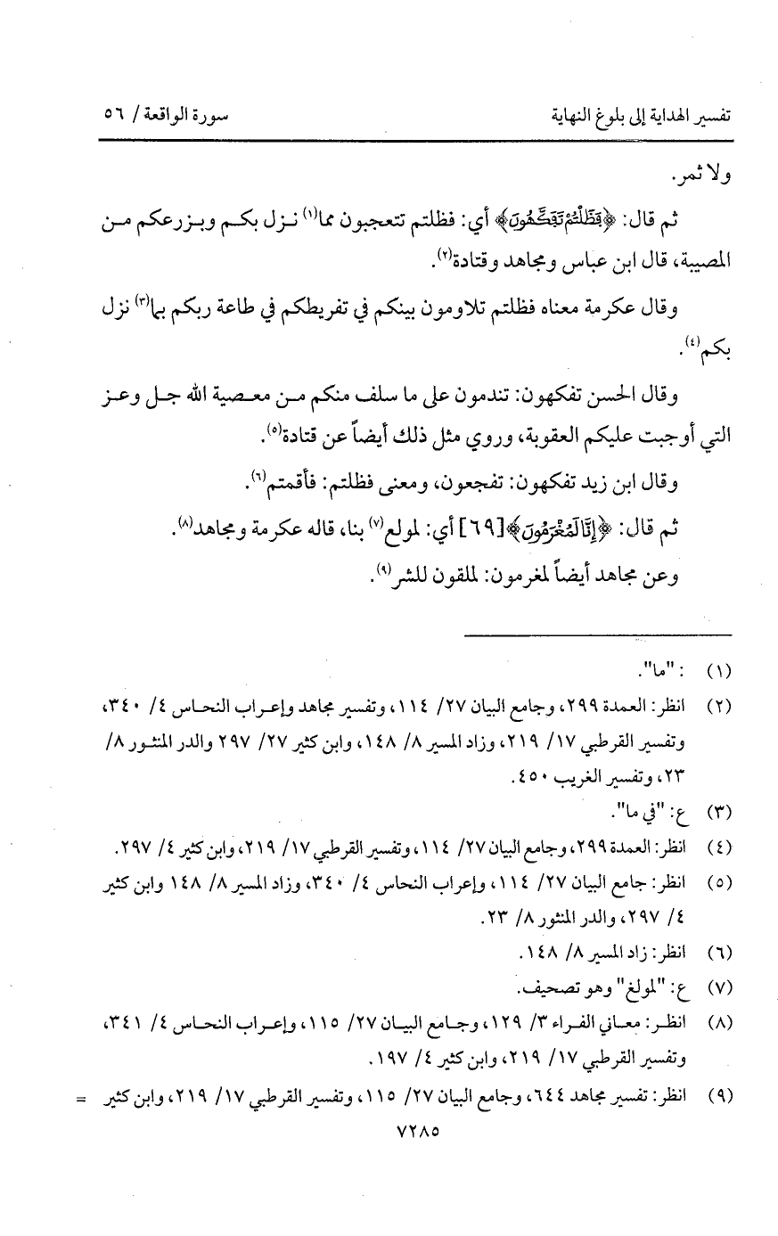 وقال الحسن تفكهون: تندمون على ما سلف منك من معصية الله جل وعز التي أوجبت عليكم العقوبة، وروي مثل ذلك أيضاً عن قتادة.