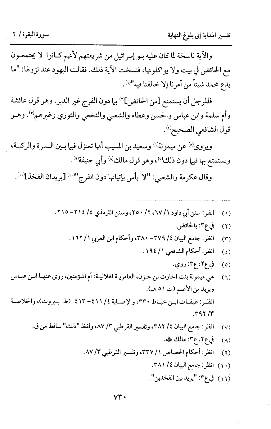 وقال عكرمة والشعبي: " لا بأس بإتيانها دون الفرج " [يريدان الفخذ].