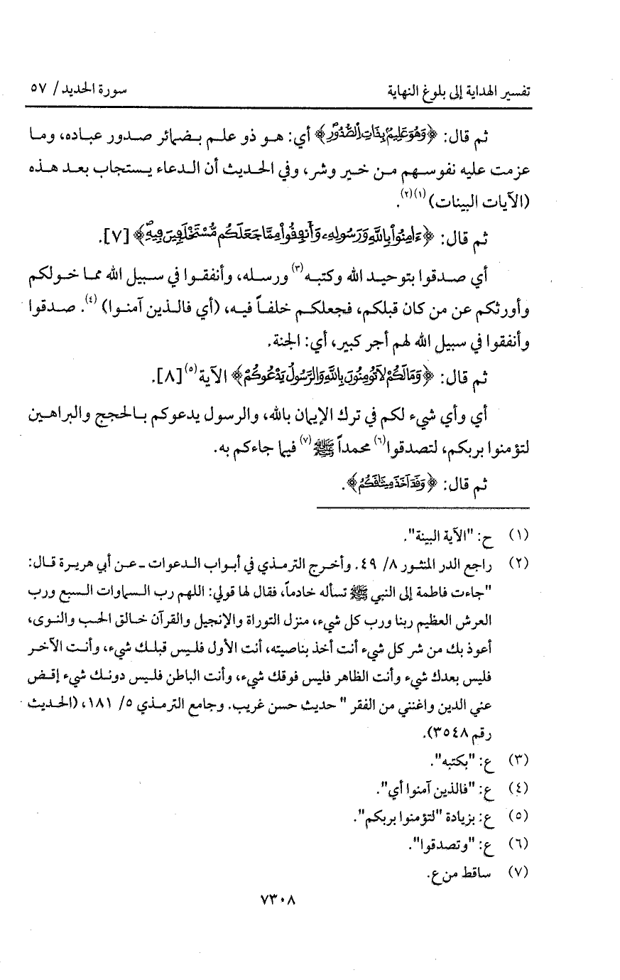 قال: {وَمَا لَكُمْ لاَ تُؤْمِنُونَ بالله والرسول يَدْعُوكُمْ} الآية.