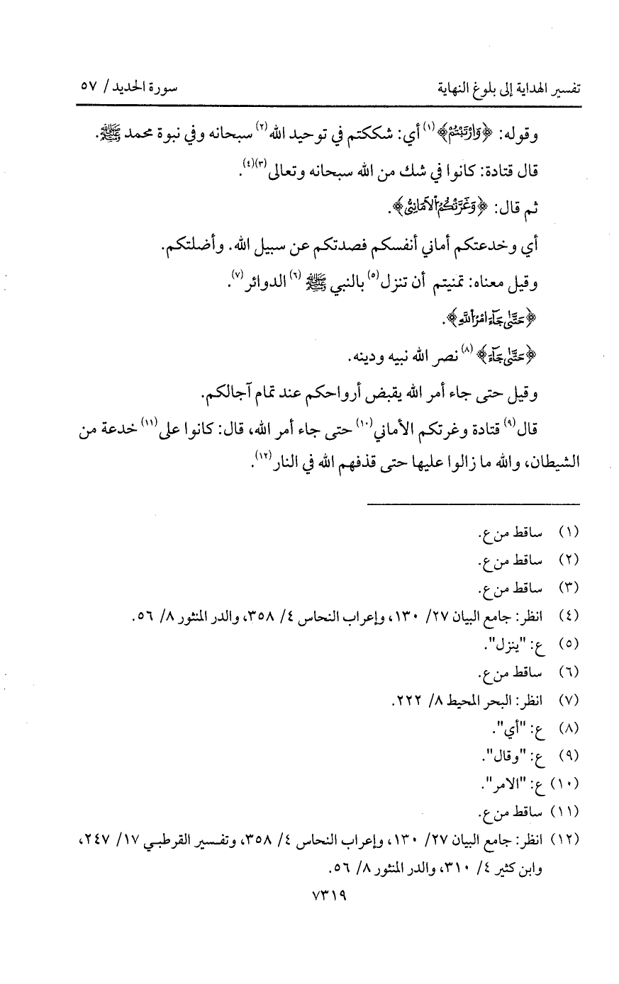 قال قتادة وغرتكم الأماني حتى جاء أمر الله، قال: كانوا على خدعة من الشيطان، والله ما زالوا عليها حتى قذفهم الله في النار.