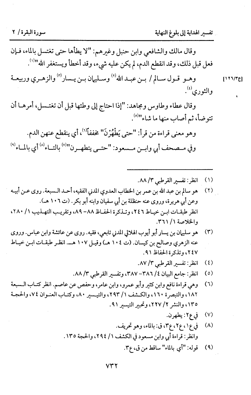 وفي مصحف أبي وابن مسعود: " حتى يتطهرن " بالتاء أي بالماء