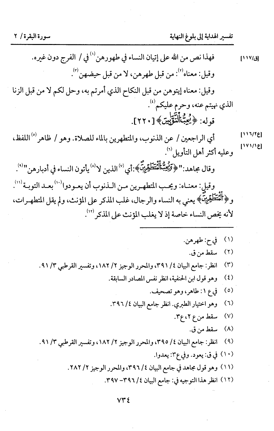 وقيل: معناه: ويحب المتطهرين من الذنوب أن يعودا بعد التوبة. و {المتطهرين} يعني به النساء والرجال، غلب المذكر على المؤنث، ولم يقل المتطهرات، لأنه يخص النساء خاصة إذ لا يغلب المؤنث على المذكر.