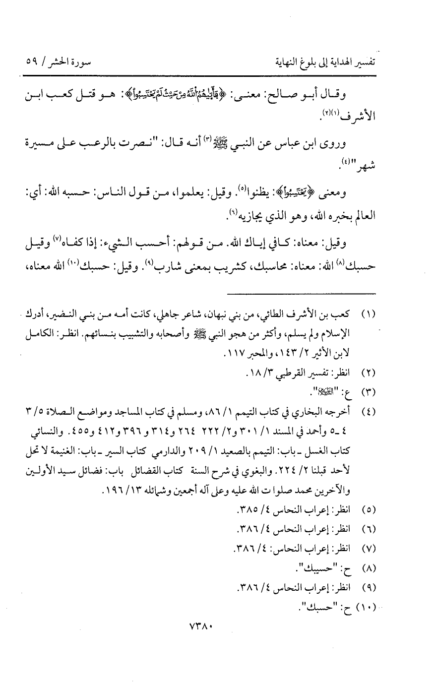 وقال أبو صالح: معنى: {فَأَتَاهُمُ الله مِنْ حَيْثُ لَمْ يَحْتَسِبُواْ}: هو قتل كعب ابن الأشرف.