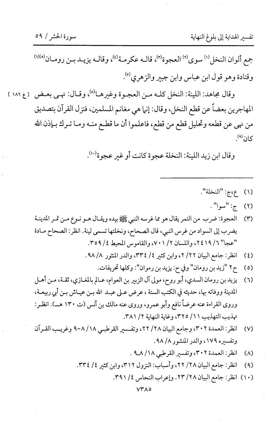 وقال مجاهد: اللينة: النخل كله من العجوة وغيرها، وقال: نهى بعض المهاجرين بعضاً عن قطع النخل، وقال: إنما هي مغانم المسلمين، فنزل القرآن بتصديق من نهى عن قطعه وتحليل قطع من قطع، فاعلموا أن ما قطع منه وما ترك بإذن الله كان.