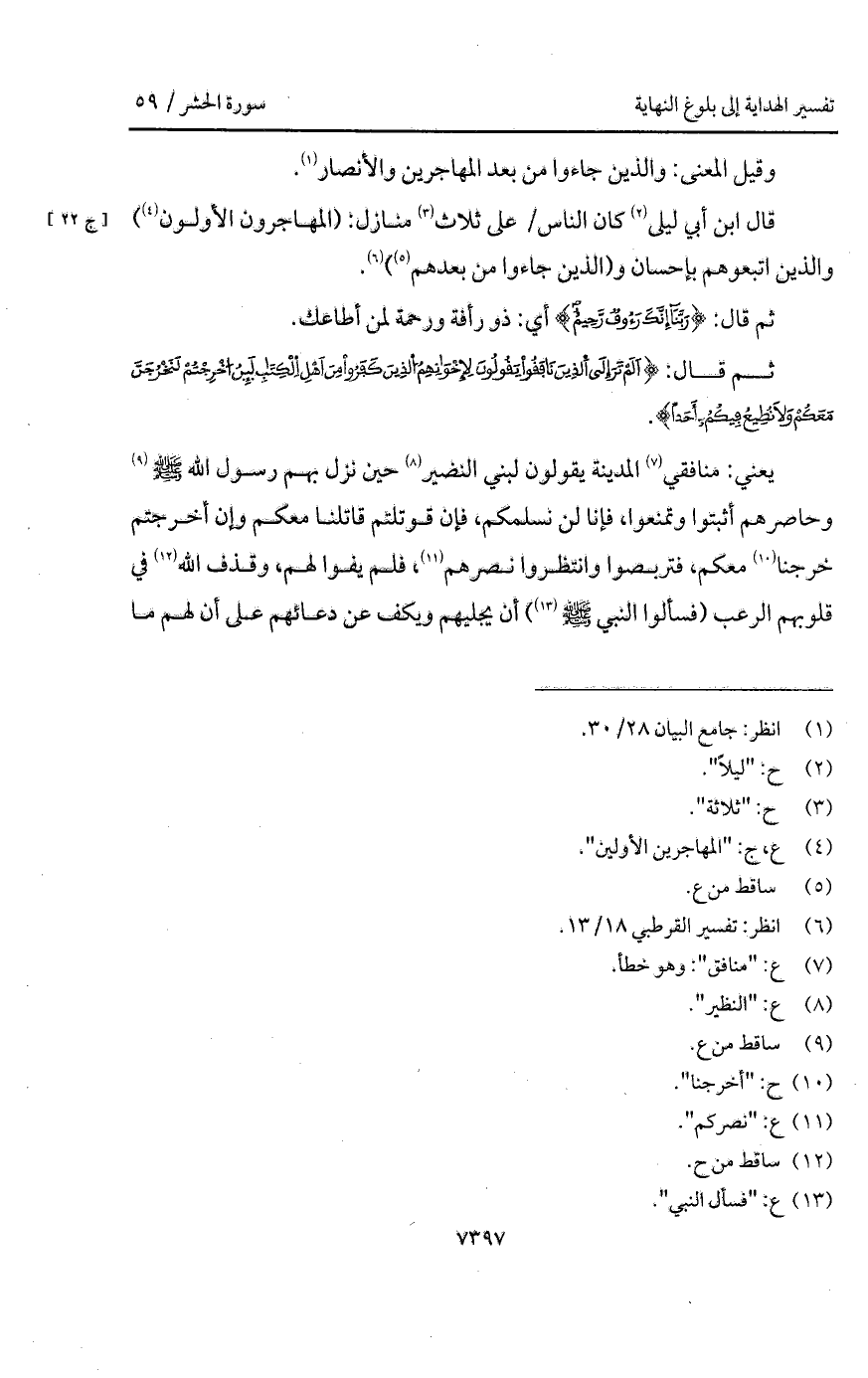 يعني: منافقي المدينة يقولون لبني النضير حين نزل بهم رسول الله A وحاصرهم أثبتوا وتمنعوا، فإنا لن نسلمكم، فإن قوتلتم قاتلنا معكم وإن أخرجتم خرجنا معكم، فتربصوا وانتظروا نصرهم، فلم يفوا لهم، وقذف الله في قلوبهم الرعب (فسألوا النبي A) أن يجليهم ويكف عن دعائهم على أن لهم ما