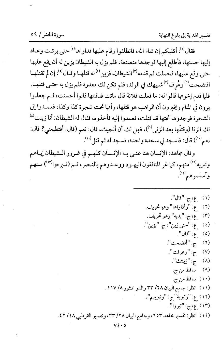 وقال مجاهد: الإنسان هنا عنى به الإنسان كلهم في غرور الشيطان إياهم وتبريه منهم، كما غر المنافقون اليهود ووعدوهم بالنصر، ثم (تبرءوا) منهم وأسلموهم.