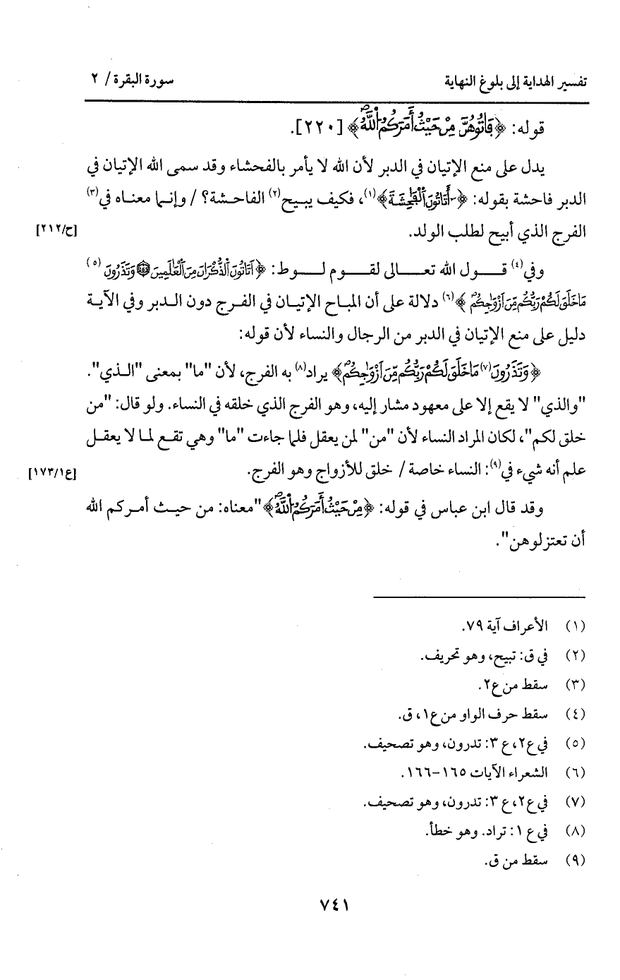 وفي قول الله تعالى لقوم لوط: {أَتَأْتُونَ الذكران مِنَ العالمين * وَتَذَرُونَ مَا خَلَقَ لَكُمْ رَبُّكُمْ مِّنْ أَزْوَاجِكُمْ} [الشعراء: 165 - 166] دلالة على المباح الإتيان في الفرج دون الدبر وفي الآية دليل على منع الإتيان في الدبر من الرجال والنساء لأن قوله: