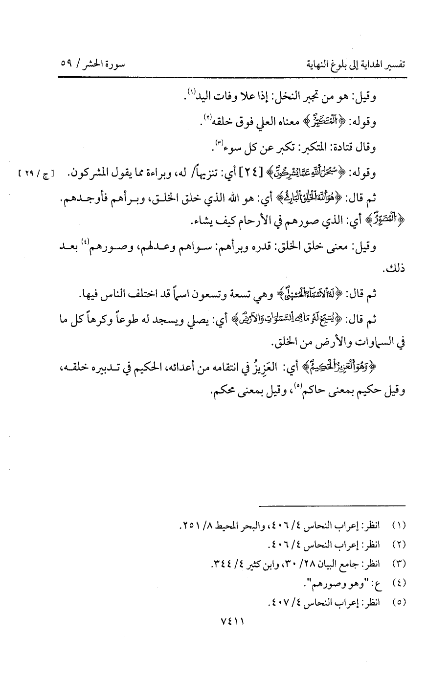 قال: {هُوَ الله الخالق البارىء} أي: هو الله الذي خلق الخلق، وبرأهم فأوجدهم. {المصور} أي: الذي صورهم في الأرحام كيف يشاء.